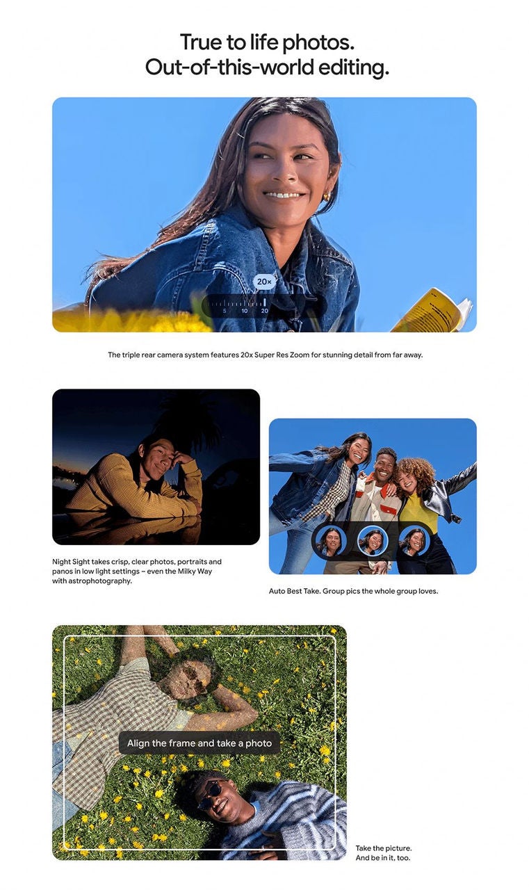 Primary Camera | 48 MP wide with Macro Focus | 13 MP ultrawide | 10.8 MP 5x telephoto lens | Super Res Zoom up to 20x |